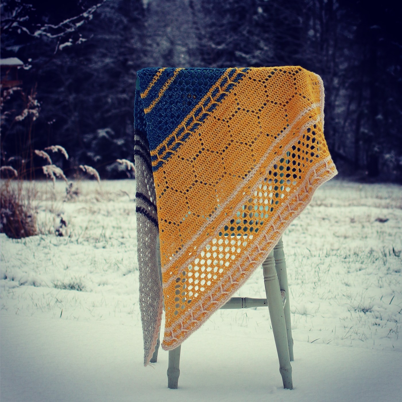 I stumbled over this shawl on Instagram and instantly fell in love. Especially the filet crocheted big honeycombs catched my eye. The pattern is by a spoon full of yarn. It really is one of the best written patterns I have ever seen. Super clear and easy to understand. I chose to crochet it in Scheepjes / stone washed in colours :