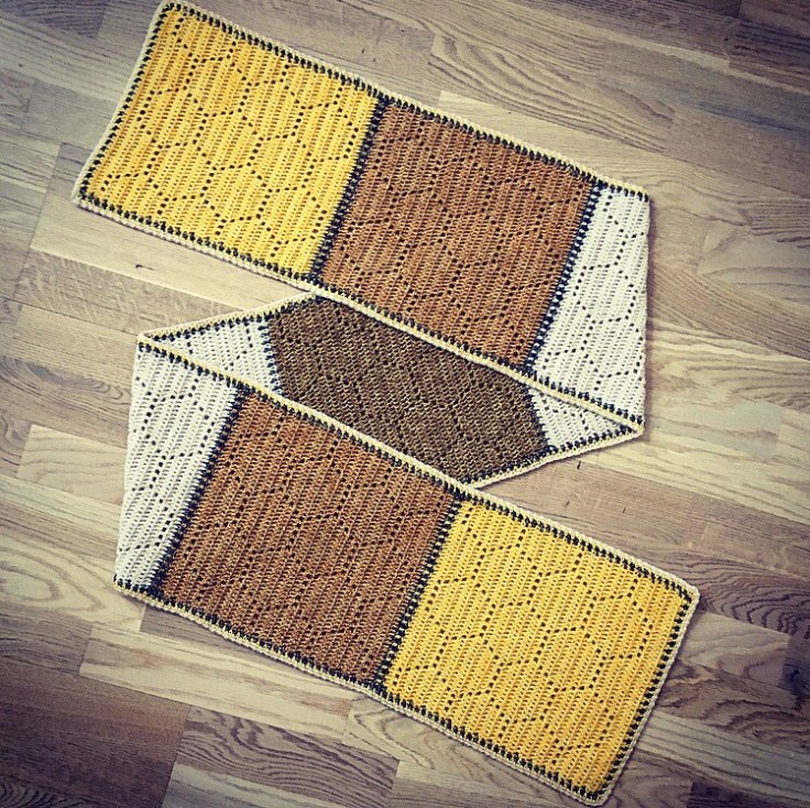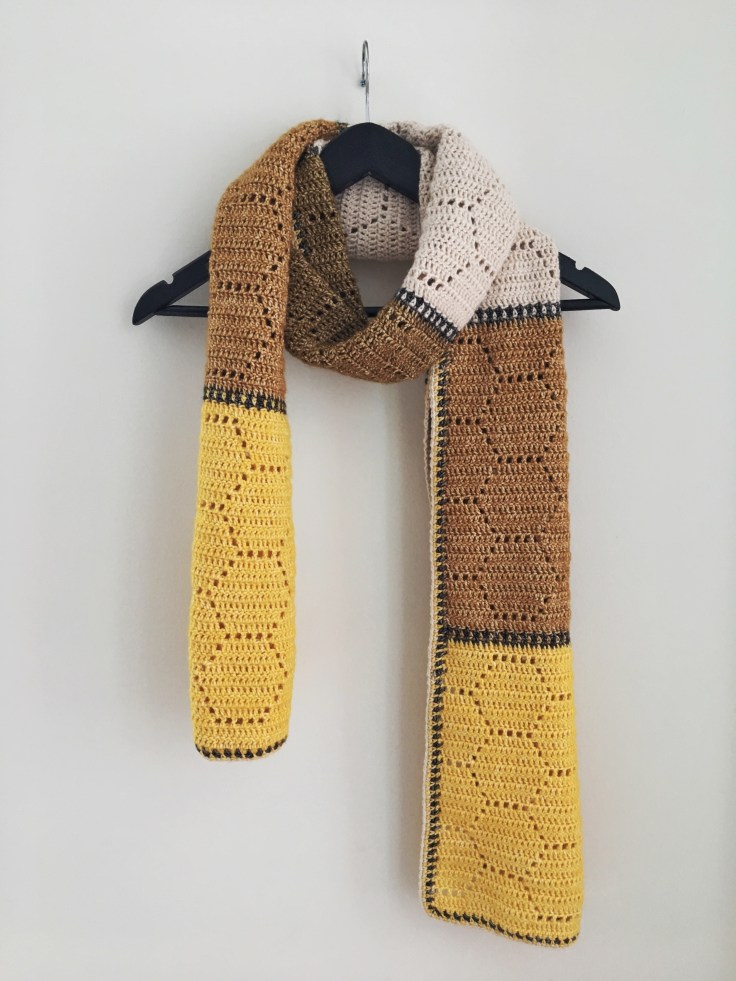 But this had to be simpler and straight. So I decided to make a less spectacular, straight scarf just with filet honeycombs.