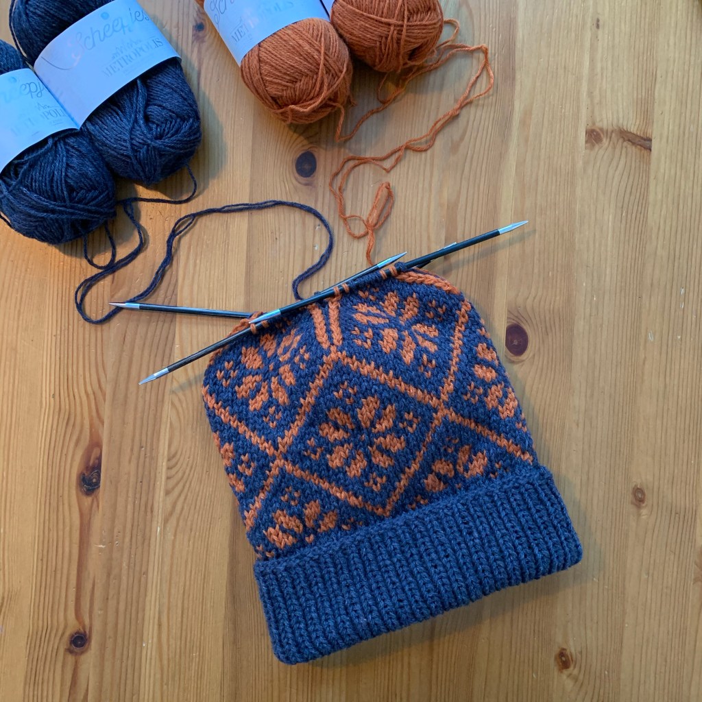 LOVE your new hat color combo! Rich and clean. Fantastic design. Looking forward to your completed pattern.