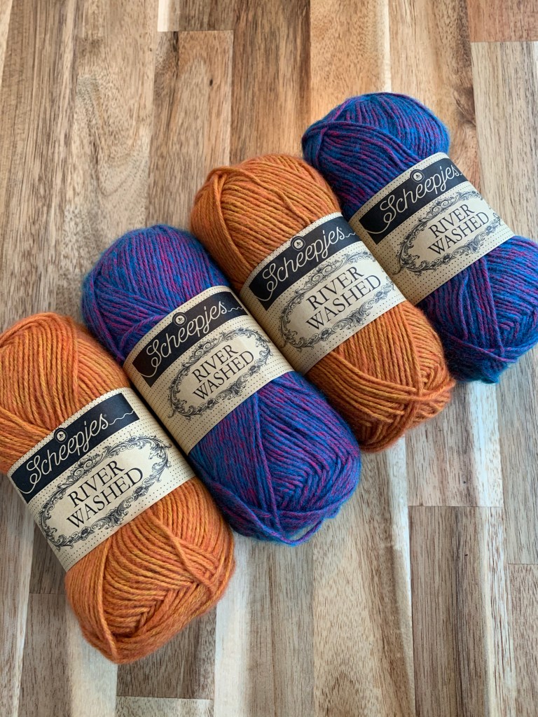The yarn I chose this time is of course coming from SCHEEPJES again. It’s the RIVER WASHED series which in my opinion is just perfect for mosaic as it has a very wooly, cosy feeling even though it is a 78% cotton 22%acrylic yarn.