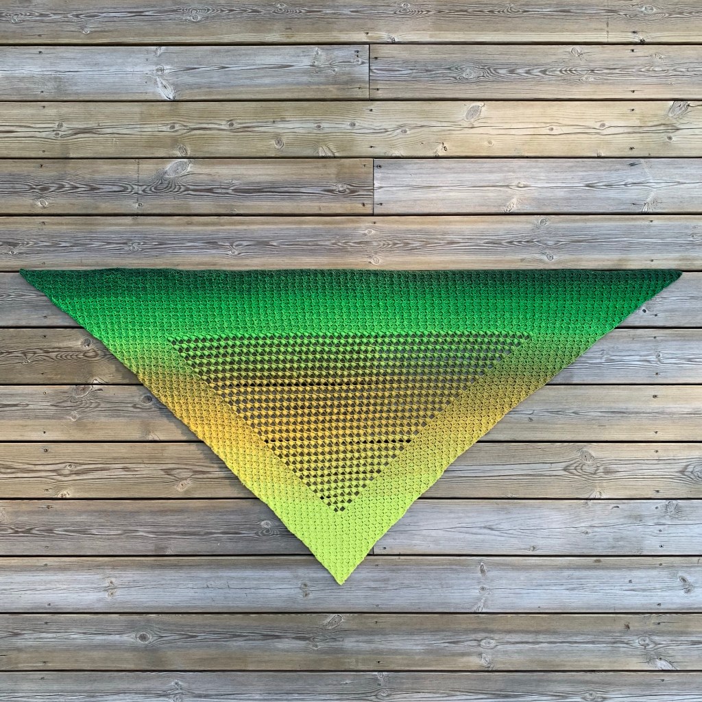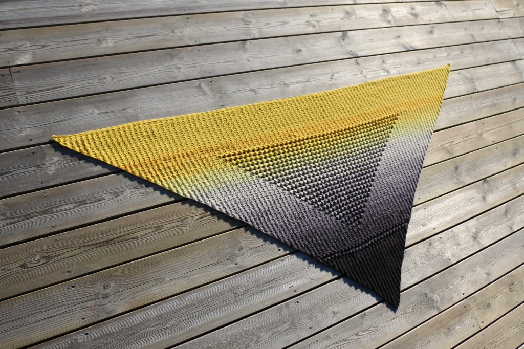 I wanted to get the most out of the yarn I used and so I added as much c2c rows as possible in the end. That gives the pattern a larger c2c part in the end, compared to the sides but that’s nothing you will notice when the triangle is worn.