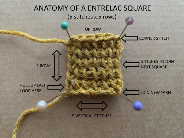 Die Entrelac Technik basiert darauf Quadrate zu häkeln die miteinander verbunden sind. Jedes Quadrat wird mit einer bestimmten Anzahl von Maschen und Reihen gehäkelt. Die Technik basiert darauf Maschen auf der Häkelnadel “zu sammeln”. Dann formt man die vertikalen Maschen indem man den Faden durch 2 Maschen - die auf der Häkelnadel sind - durchzieht.... Continue Reading →