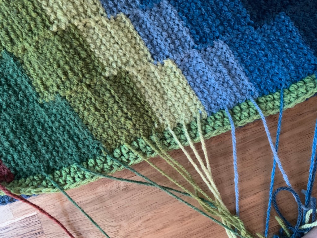 (If you did weave as you go for a few stitches so your ends will end up outside the double border and needs to be weaved into the double border in the end) 🙂