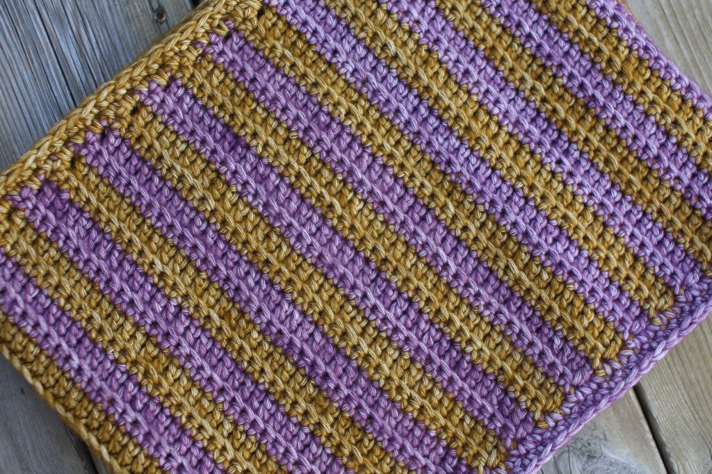 So we took out the good stuff. Scheepjes Stone Washed Xl in colors Enstatite and Deep Amethyst and started to decide what to do with it…. Beginner friendly with a twist.